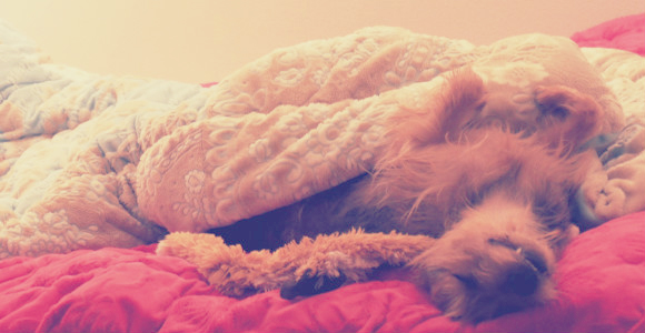 Kip seemed a little more tolerant during class with other dogs in the room. Perhaps it was because he had a playdate the day before with Melody and was tired. Perhaps it was because he was hungry because he was only given half of the usual amount he eats for breakfast in the morning. Whatever the reason, when Kip got home he crawled in bed and slept, and slept and slept. And all along, Mr. Foxy slept with him.